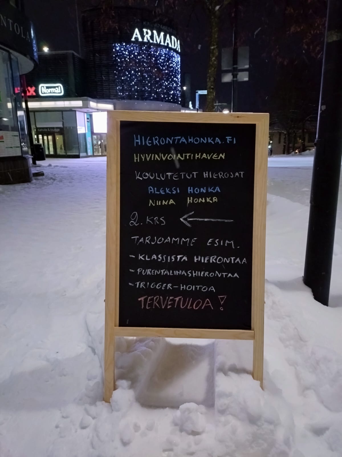Tarjoan yksilöllistä ja ammattitaitoista hierontaa. Minulle tärkeintä on, että tunnet olosi turvalliseksi, kuulluksi ja aidosti paremmaksi hoidon jälkeen.